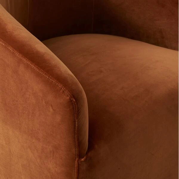 wheels with mid-century appeal, upholstered here in a soft ochre