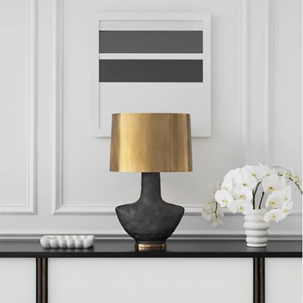 Be the first to review “Armato Table Lamp, Black Metallic / Antique Burnished Brass Shade” Cancel reply