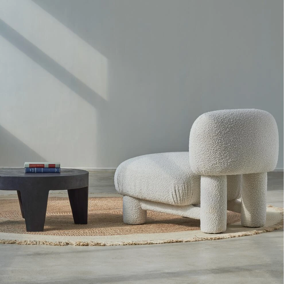 Japandi accent chair in off-white boucle