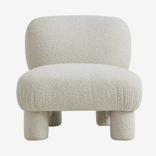 This chic accent chair, upholstered in soft off-white boucle,