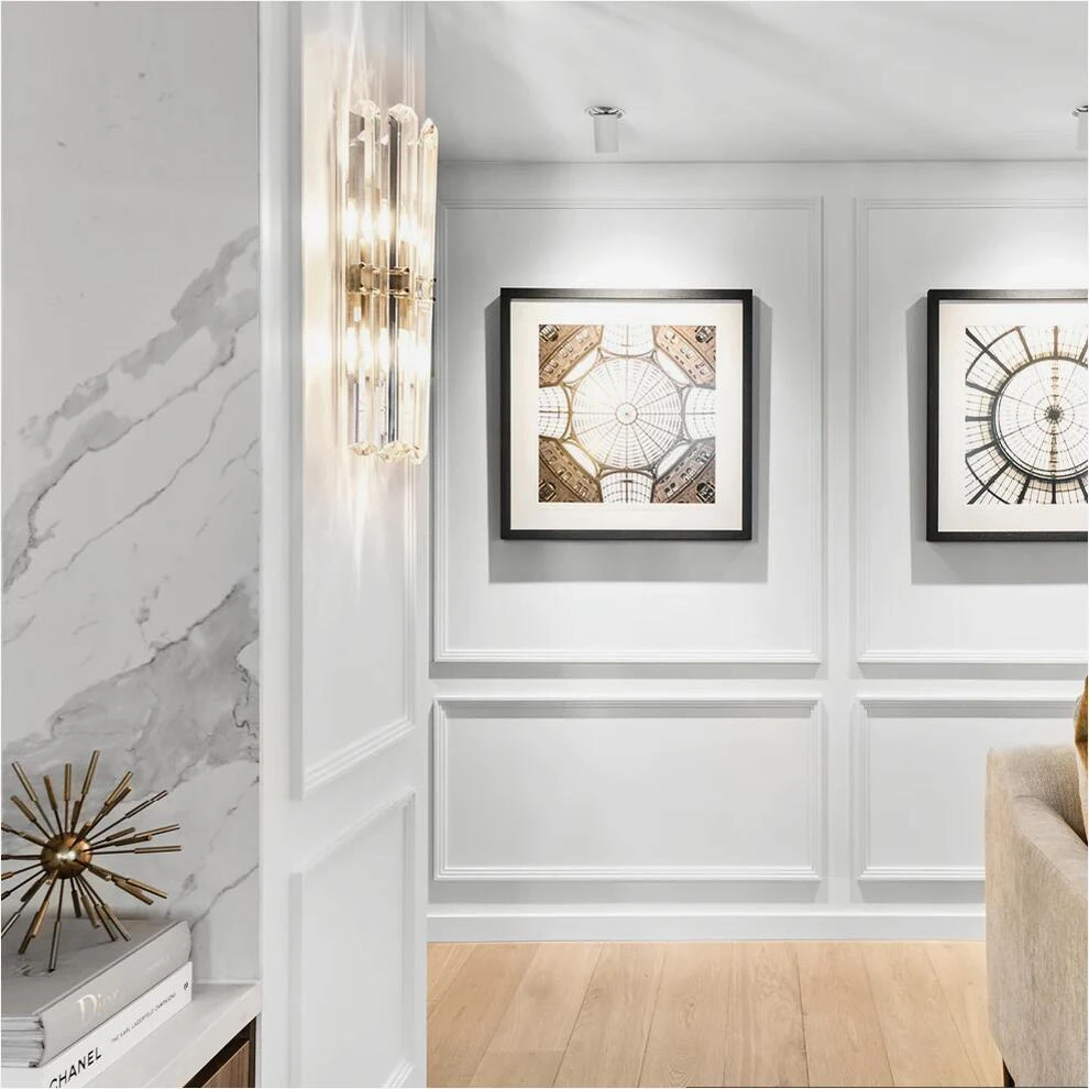 This glamorous sconce is created from elongated faceted crystals