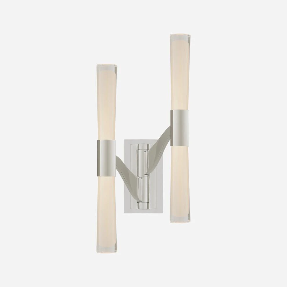 A sleek, modern wall light with linear structure supporting two