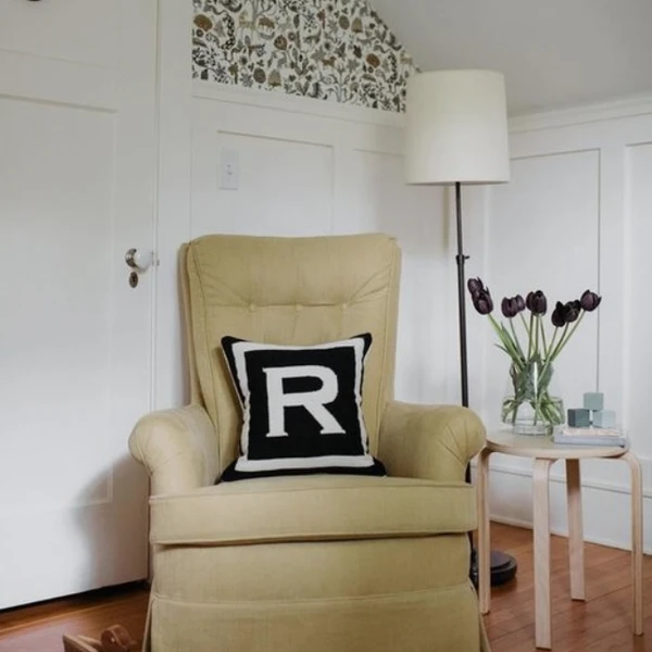 O’Brien, Bryant stands elegantly in a living room or hallway adding