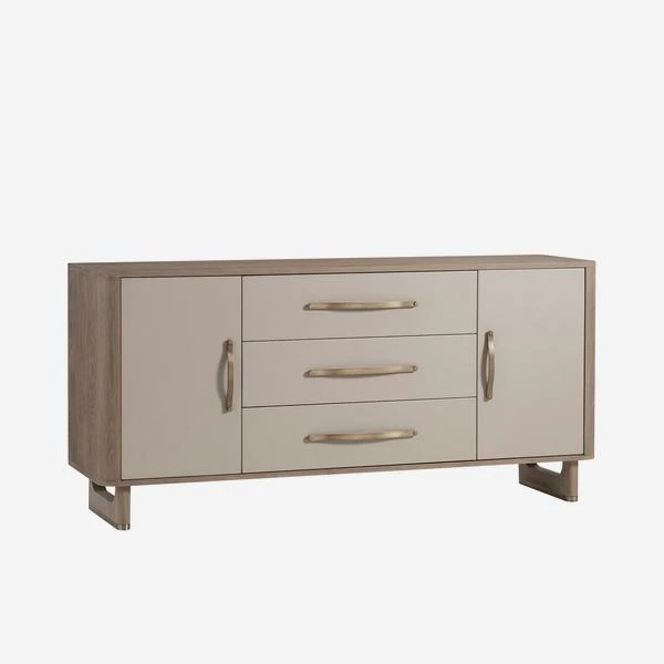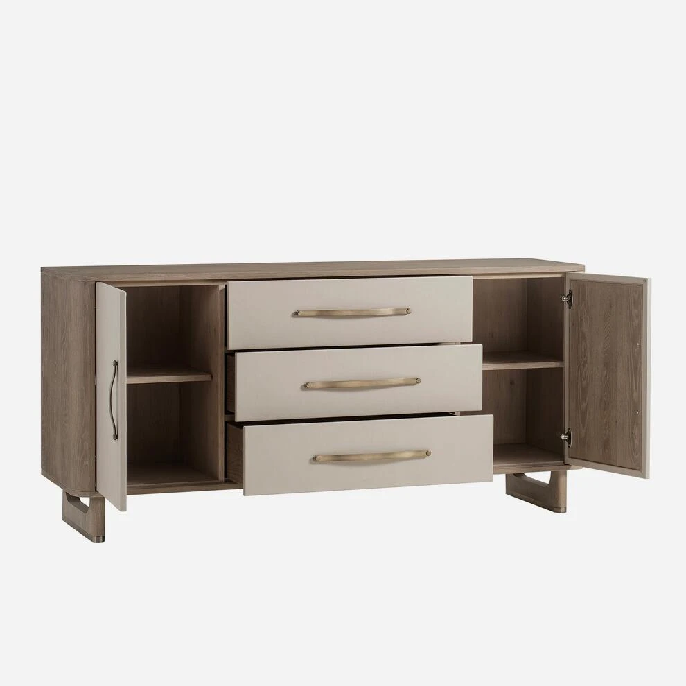 sideboard evokes cool, skandi chic. Three wide drawers are framed