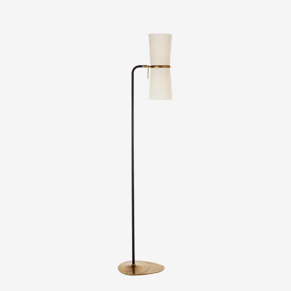 Clarkson Floor Lamp, Black And Hand-Rubbed Antique Brass