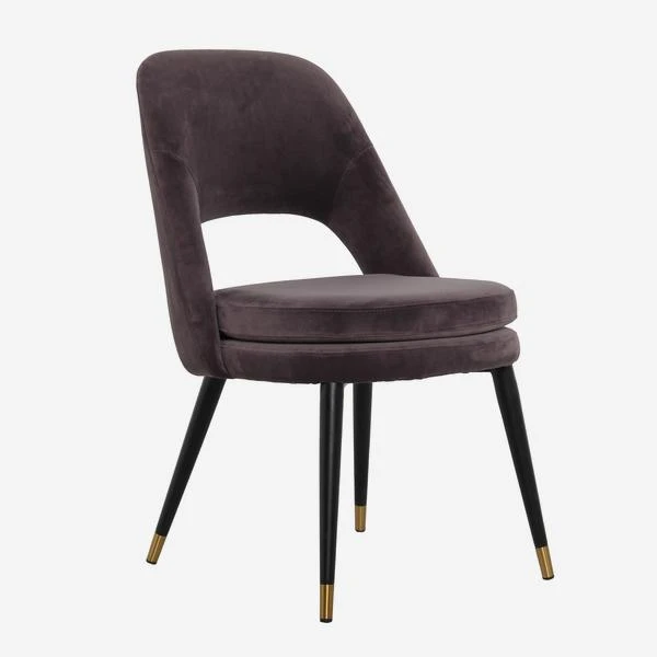 in smooth, deep mink colour velvet with slim legs in contrasting