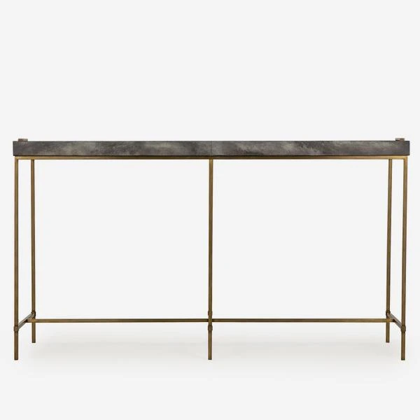 A charcoal tray top console table, with satin brass finish
