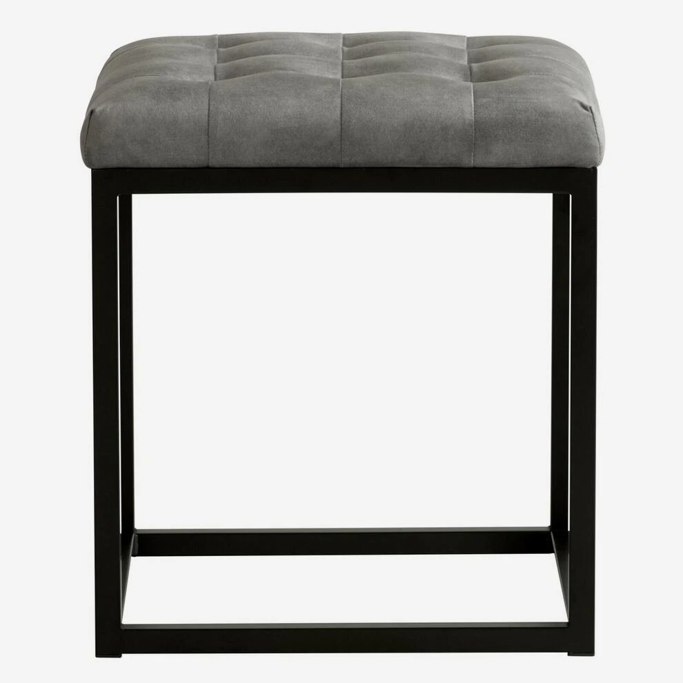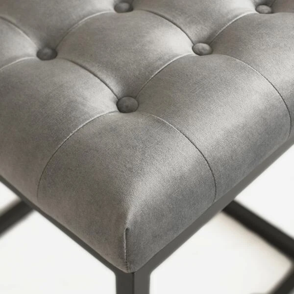 Padded velvet ottoman stool in grey