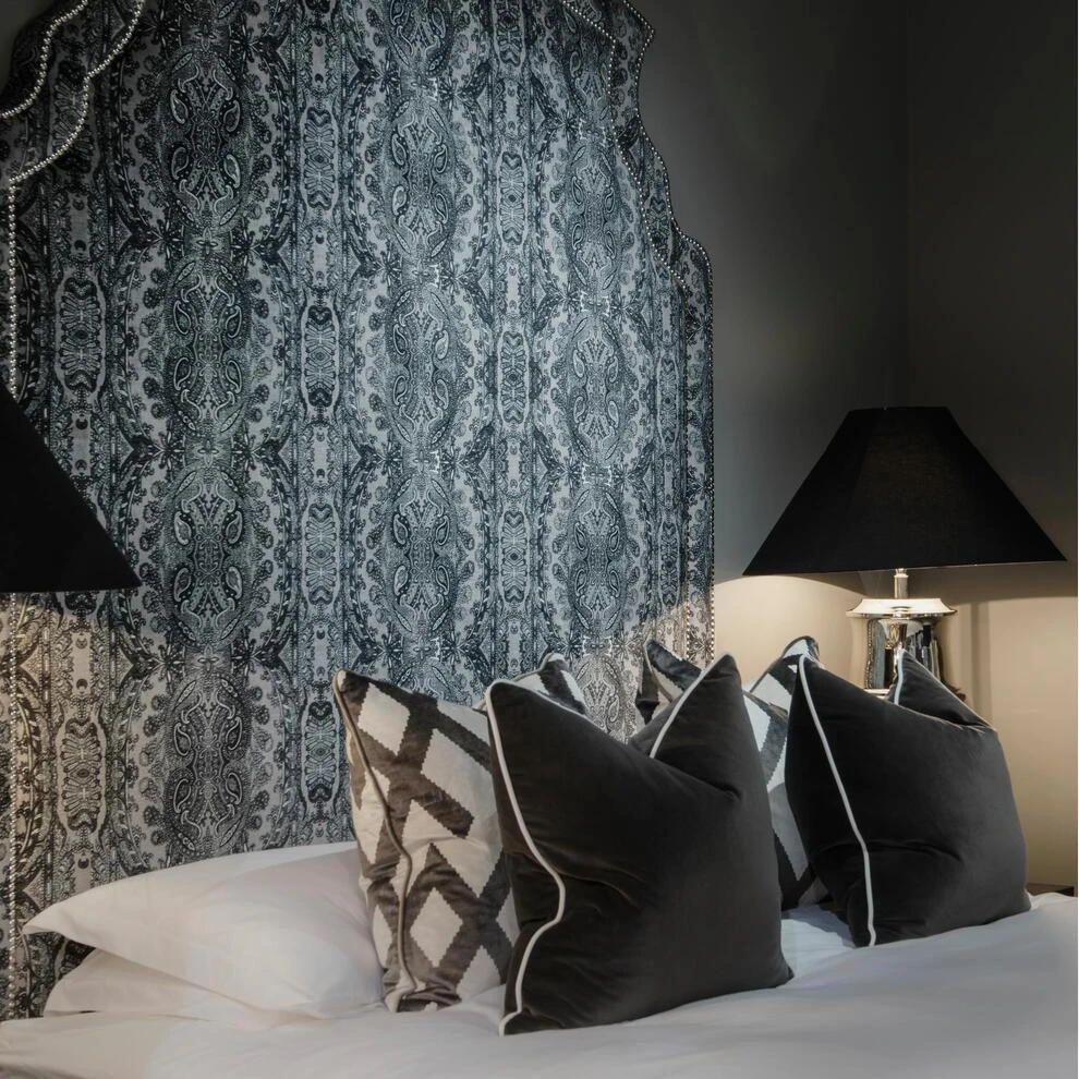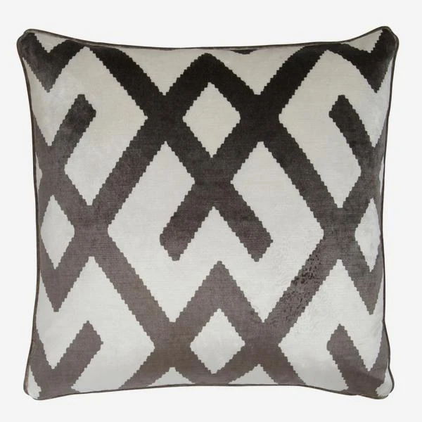 A bold geometric diamond and cross motif in smart, velvet. Handmade in the UK and filled with sustainably