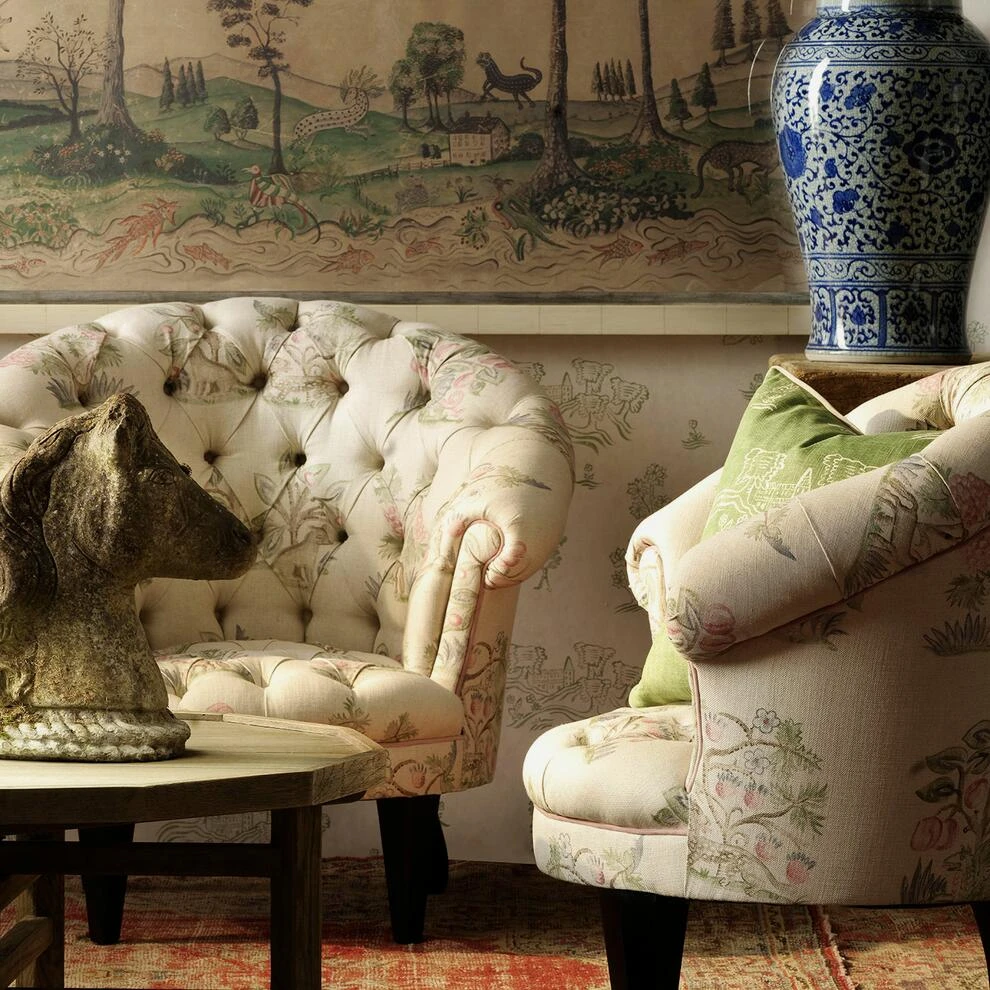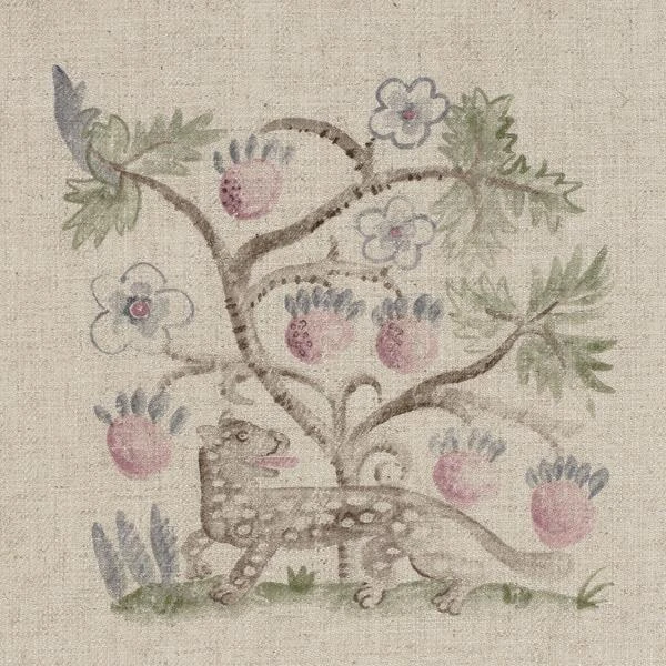 with a strawberry bush. This traditional cotton twill imbued with