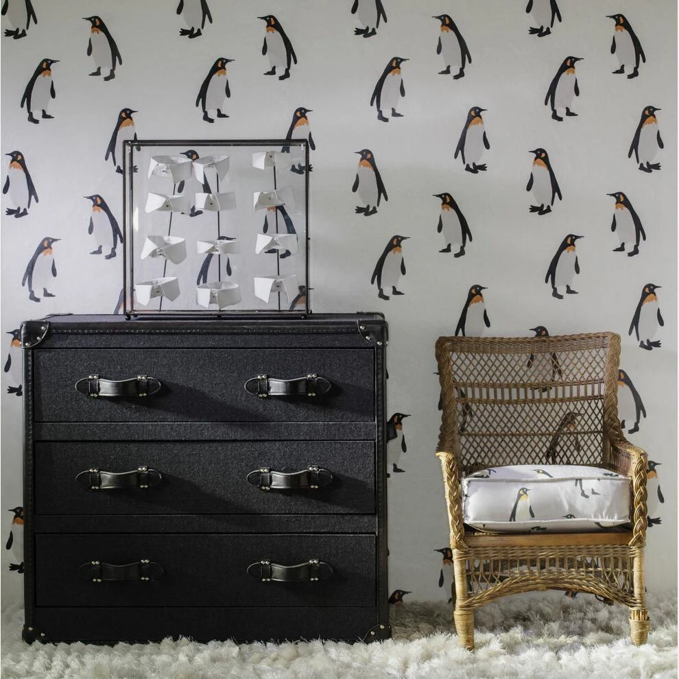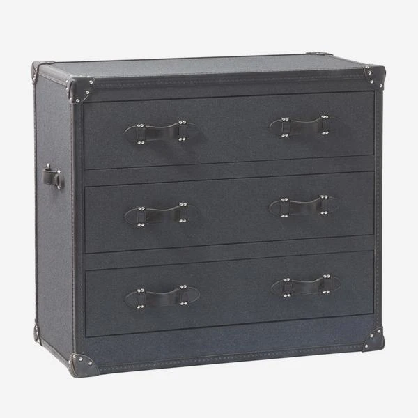 A smart, charcoal grey, wool upholstered chest of drawers with