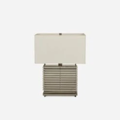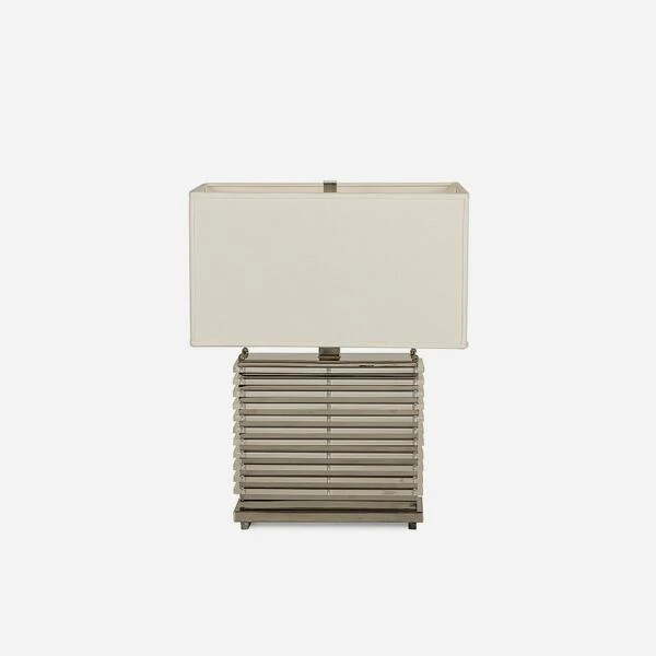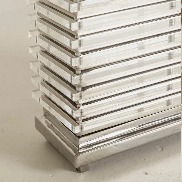 and a polished nickel base. The stacked rectangles achieve a chic