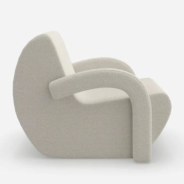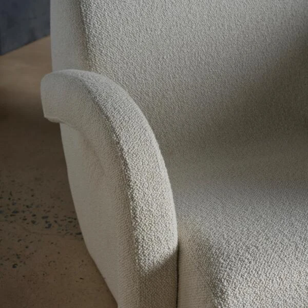 Curved accent chair in off-white bouclé by Kelly Hoppen