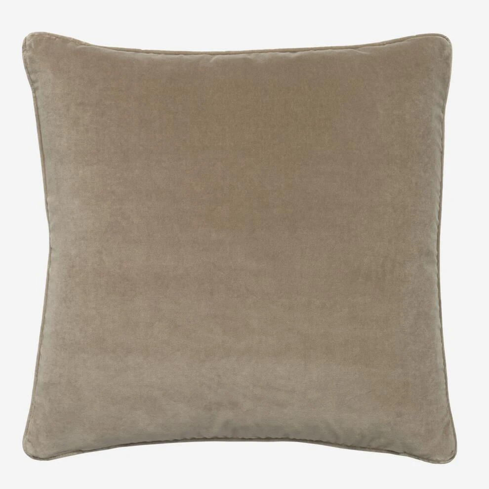 Luxury cotton velvet cushion in neutral stone