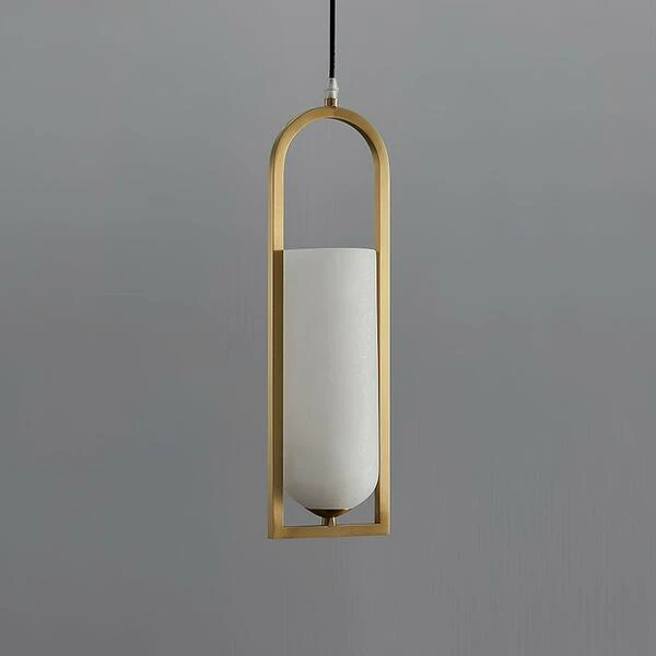 Small elongated pendant in brass with alabaster shade