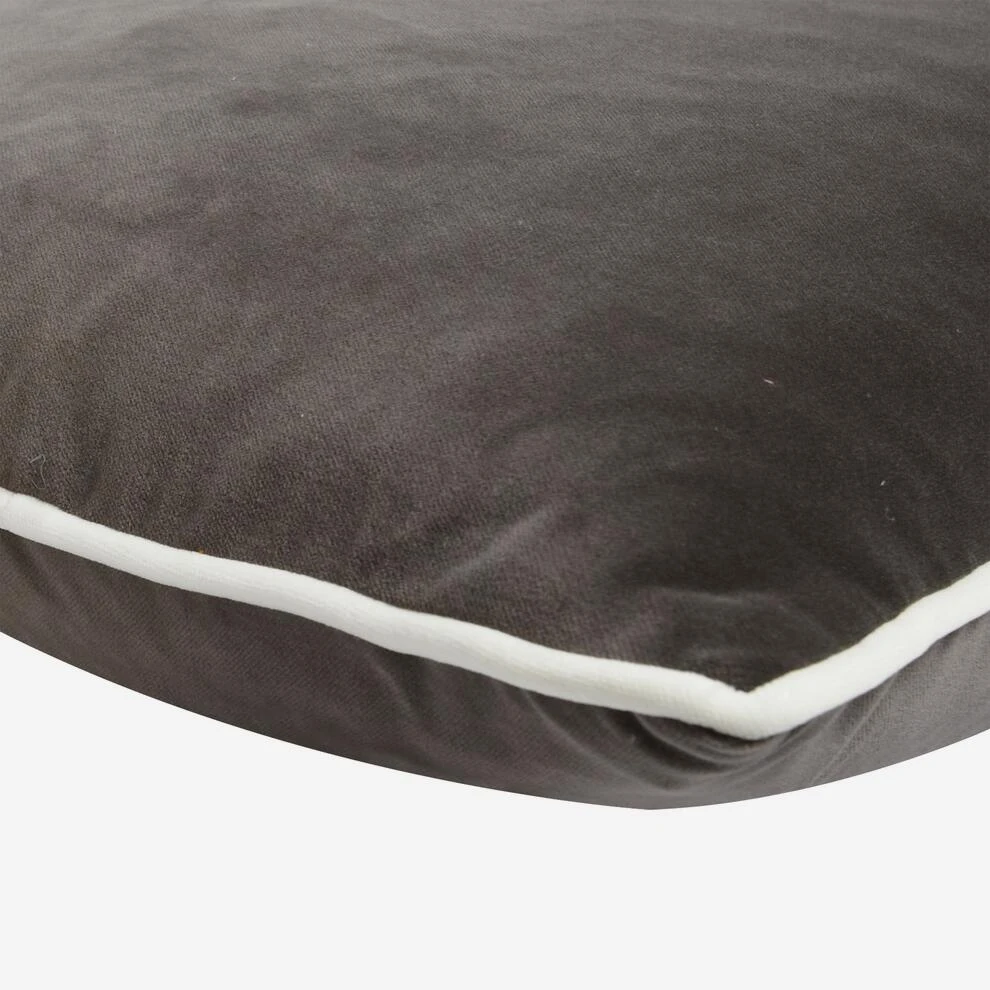 A rich, velvet cushion with contrast milk piping. Handmade in