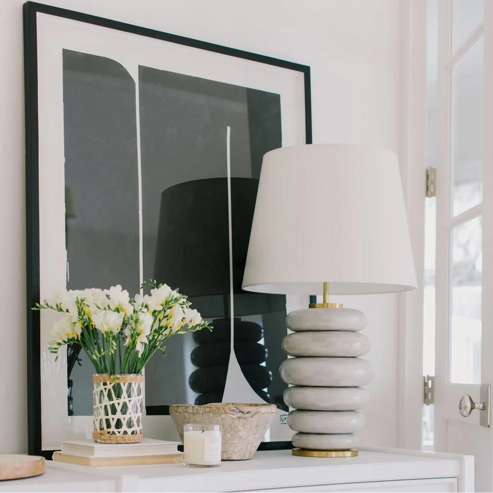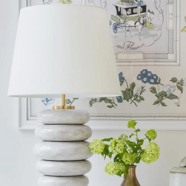 Stacked table lamp in antiqued white