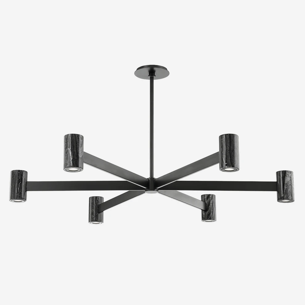 Modern six light chandelier in black brass