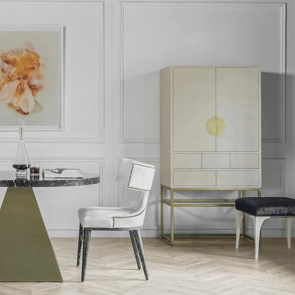 A luxurious bar cabinet formed from clean lines with a two-tone