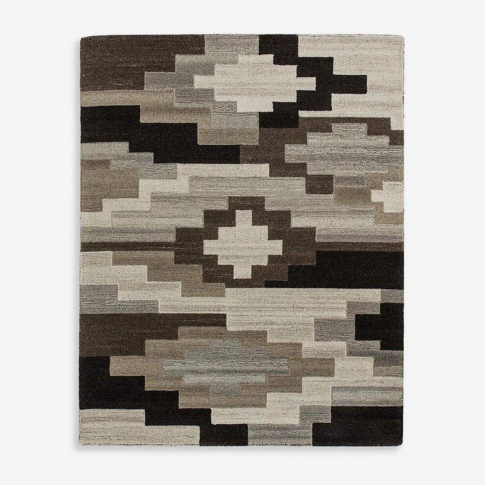 This bold rug displays a series of interlocking geometric shapes
