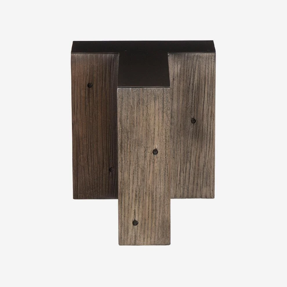 A large alphabet letter T side table made from solid weathered